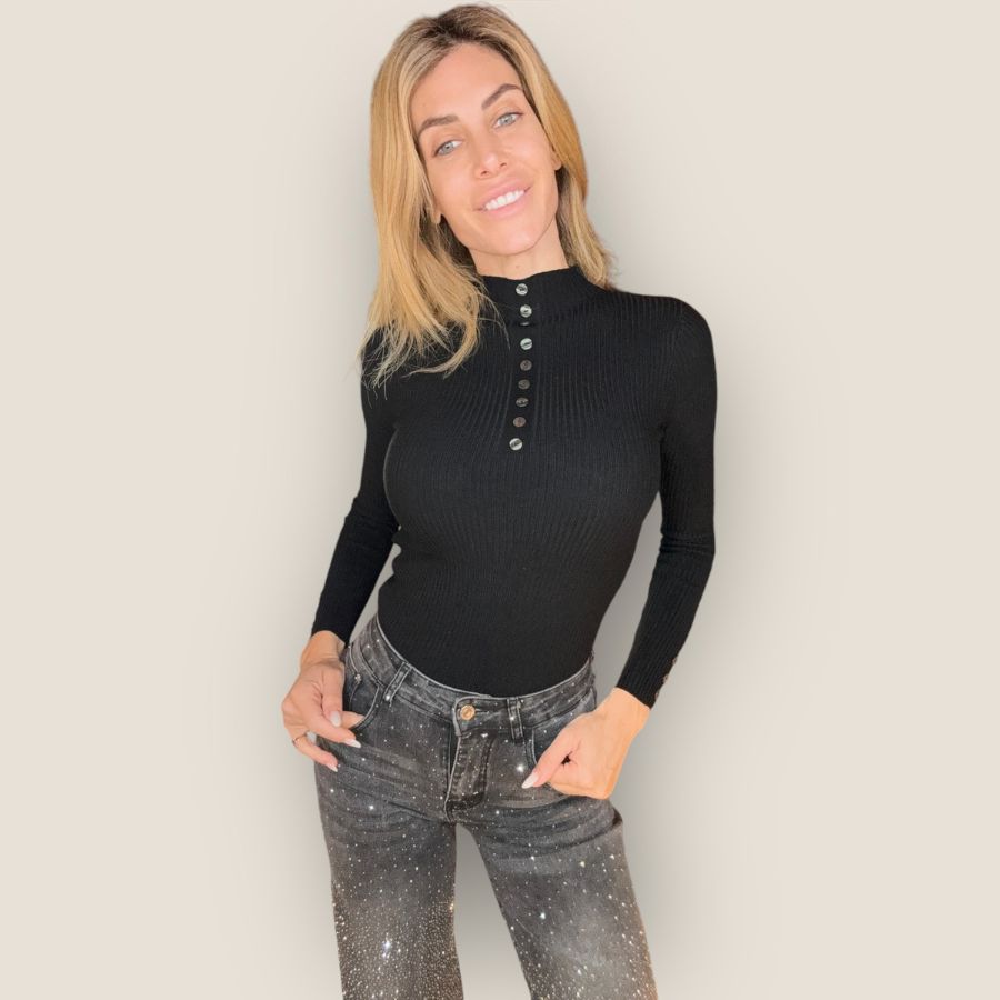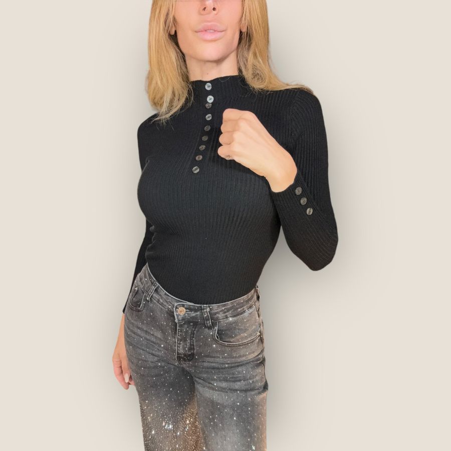 maglione collo lupetto bottoncini sul davanti e sulle maniche